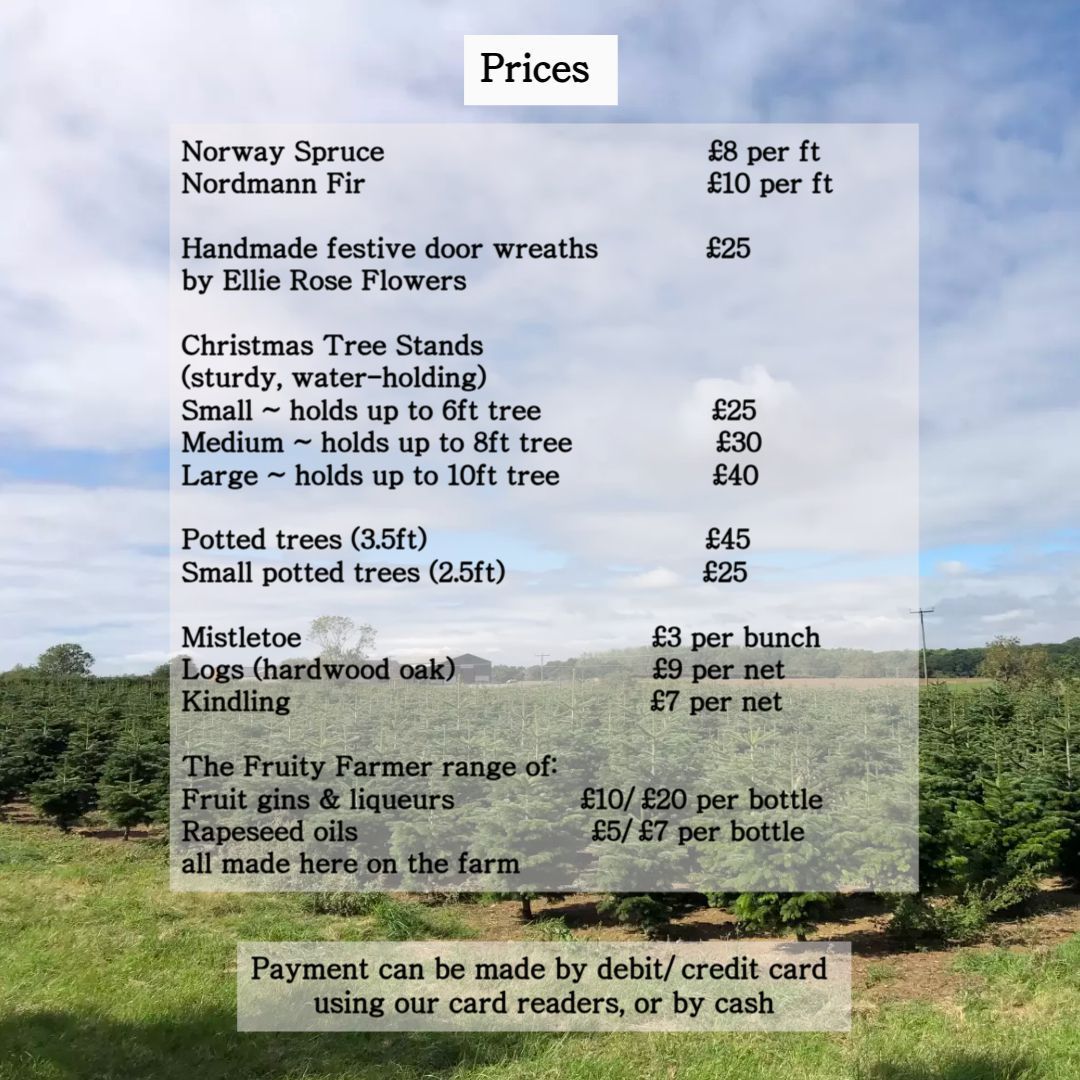 Don't forget we also sell water-holding Christmas tree stands, handmade festive door wreaths, logs & kindling and our very own range of Fruity Farmer homemade fruit gins & liqueurs and infused rapeseed oils all made here on the farm. (Find out more at www.thefruityfarmer.co.uk). There are now 16 fruit gins & liqueurs in our range - Rhubarb Gin, Seville Orange Gin, Gooseberry Gin, Apple & Blackberry Gin, Strawberry Gin, Quince Gin, Sloe Gin, Raspberry Vodka, Limoncello, Apricot Vodka, Mulberry Vodka, Cherry Brandy, Blackberry Whisky, Seville Orange Rum, Rhubarb Rum and our NEW Elderberry Vodka Liqueur...plus four rapeseed oils, Classic, Lemon-Infused, Chilli-Infused and Wild Garlic-Infused. You'll find them all for sale throughout our season in our log-cabin style 'shop' area.